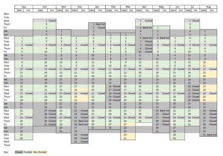 Click on the image to view our 2025-26 opening times, and to see which days may be covered by the government funded hours.